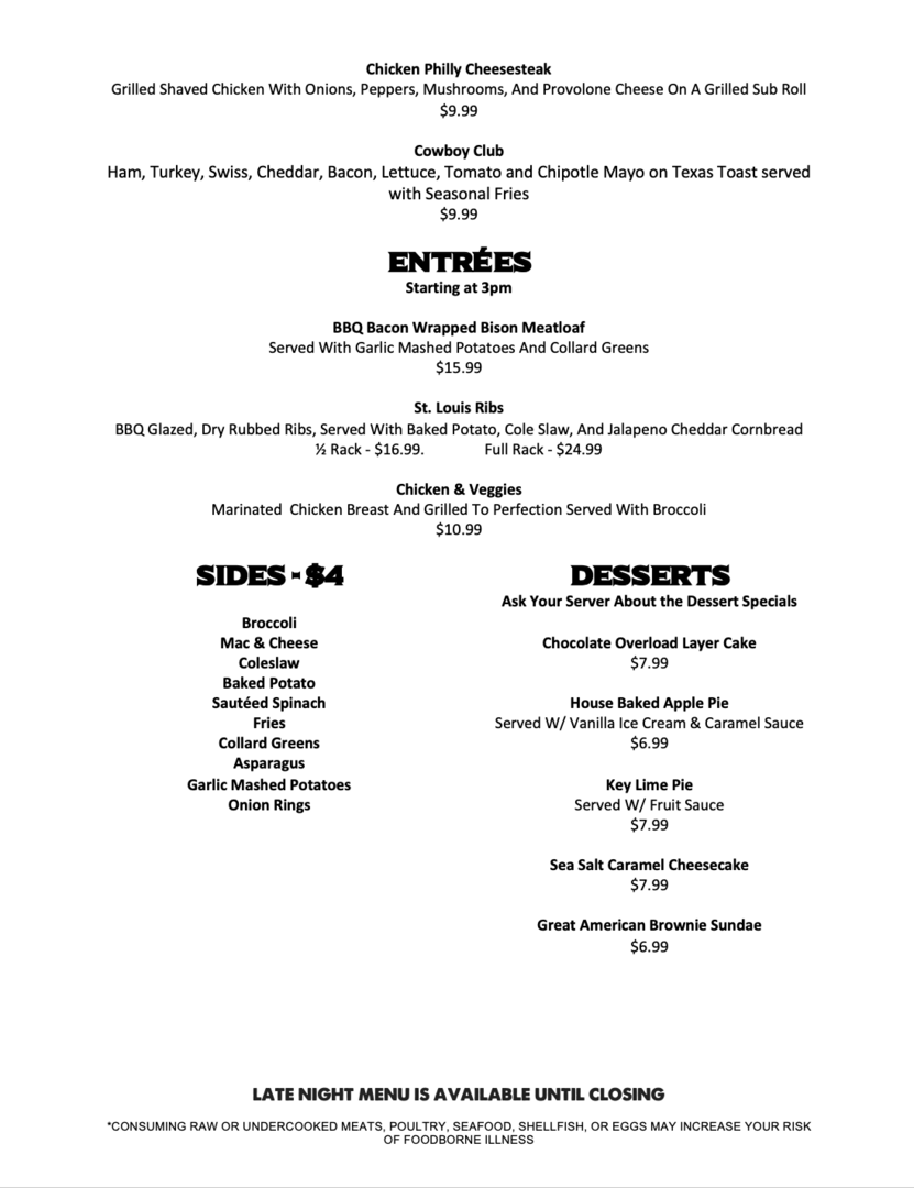 Our Menu An Award Winning Restaurant And Venue Of Sporting Events And Live Music